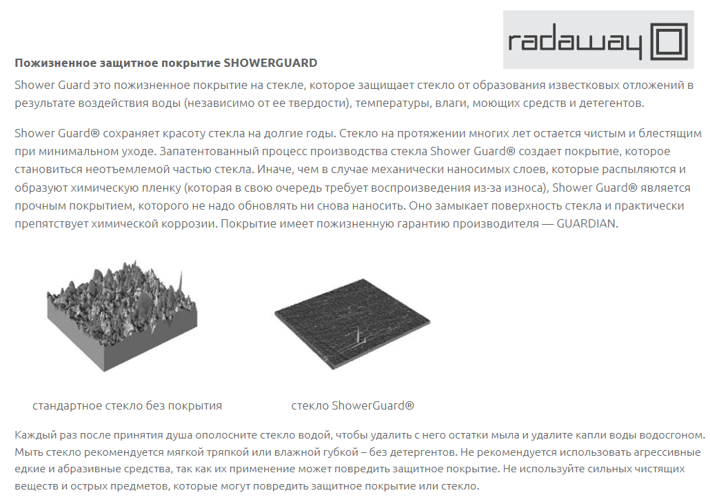 2. Shower Guard® - защитное покрытие с пожизненной гарантией. Больше информации здесь.